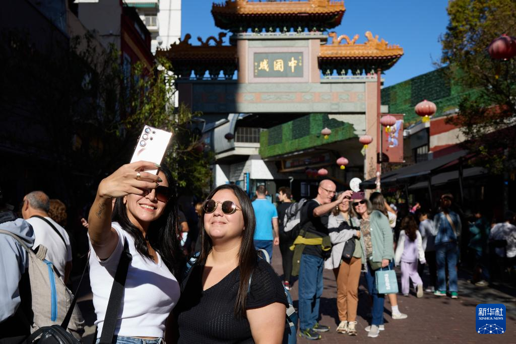 你好,Hola!——拉美视角下的中国魅力 2025年5月10日,市民在阿根廷布宜诺斯艾利斯的“中国城”牌坊前自拍。 随着中国与拉美国家交流合作的不断推进,中国元素在拉美社会中日益增多,从街头的中餐馆到各类中国文化符号,从城市中穿梭的中国产汽车到疾驰的中国制造地铁……这些元素正逐步融入当地民众的日常生活,展现出中拉互动不断深化的现实图景。 新华社记者 孟鼎博 摄