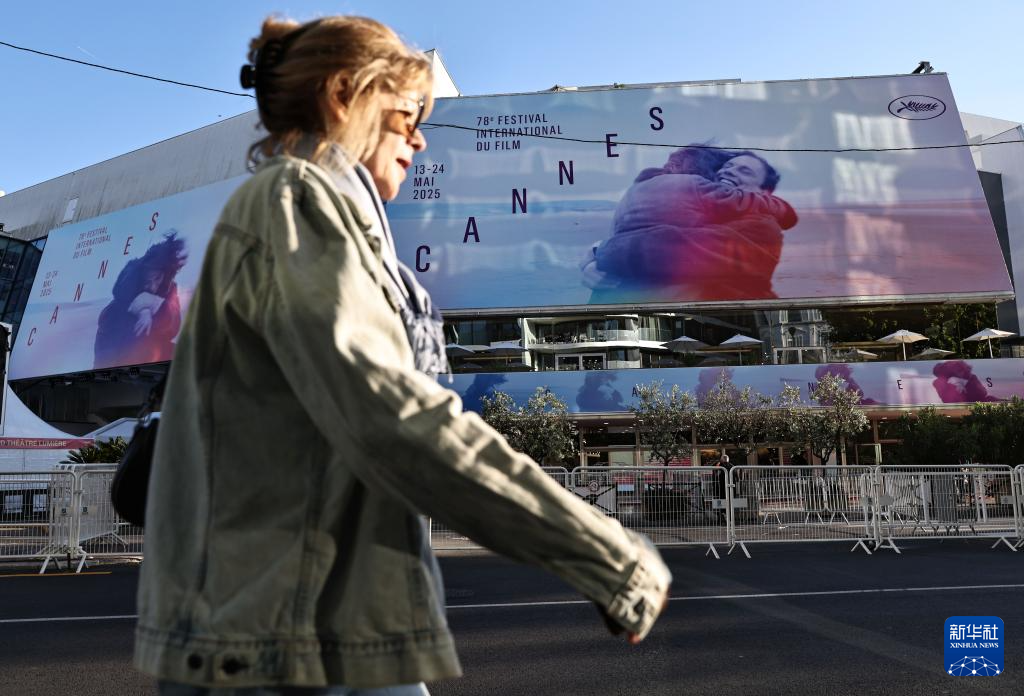 第78届戛纳国际电影节即将开幕 5月12日,在法国南部海滨城市戛纳,一名行人经过电影宫外的戛纳国际电影节海报。 第78届戛纳国际电影节将于13日在法国南部城市戛纳开幕。 新华社记者 高静 摄