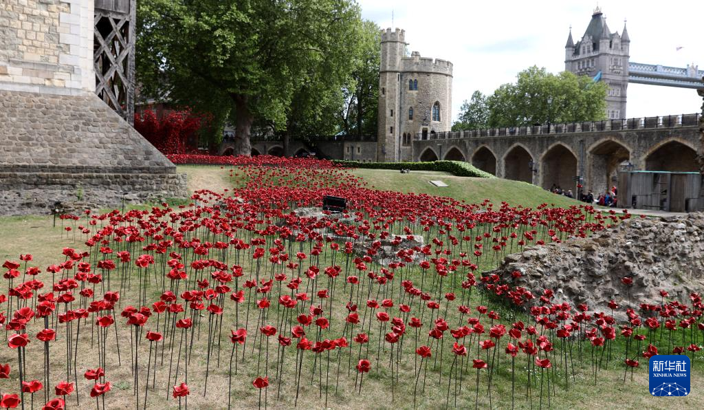 伦敦塔:装置艺术纪念二战停战80周年 这是5月7日在英国伦敦塔拍摄的陶瓷罂粟花艺术装置。 由陶瓷制作的罂粟花组成的装置艺术品于5月6日至11月11日在英国伦敦塔展出,以此纪念在第二次世界大战中献出生命的将士。 新华社记者 李颖 摄