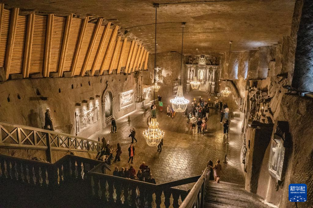 探访波兰维利奇卡盐矿 5月7日,游客在波兰克拉科夫附近的维利奇卡盐矿游览。 维利奇卡盐矿位于波兰南部历史名城克拉科夫附近,是世界上最古老的盐矿之一。维利奇卡盐矿通道全长约300公里,最深处达地下327米,整条通道连接着约3000个洞室,其中仅一小部分对外开放。除了用于采矿的矿井、燃烧室、风道、排水系统等,矿工们还建造了教堂、盐雕画廊、地下湖泊等,构建起一座规模宏大的“地下城”。凭借其独特的历史、文化与艺术价值,维利奇卡盐矿于1978年被列入联合国教科文组织世界遗产名录。 新华社记者 张帆 摄