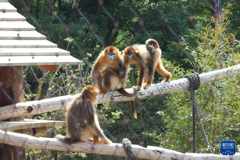中国金丝猴亮相法国博瓦勒野生动物园 这是5月7日在位于法国中部小城圣艾尼昂的博瓦勒野生动物园拍摄的金丝猴。 来自中国的三只金丝猴7日正式亮相法国博瓦勒野生动物园,该园还为这批金丝猴举行了命名仪式。在7日的命名仪式上,博瓦勒野生动物园园长鲁道夫·德洛尔揭晓了公众通过网络投票形式为三只金丝猴选出的新名字:“金豆”“金宝”和“金花”。 新华社记者 孙鑫晶 摄