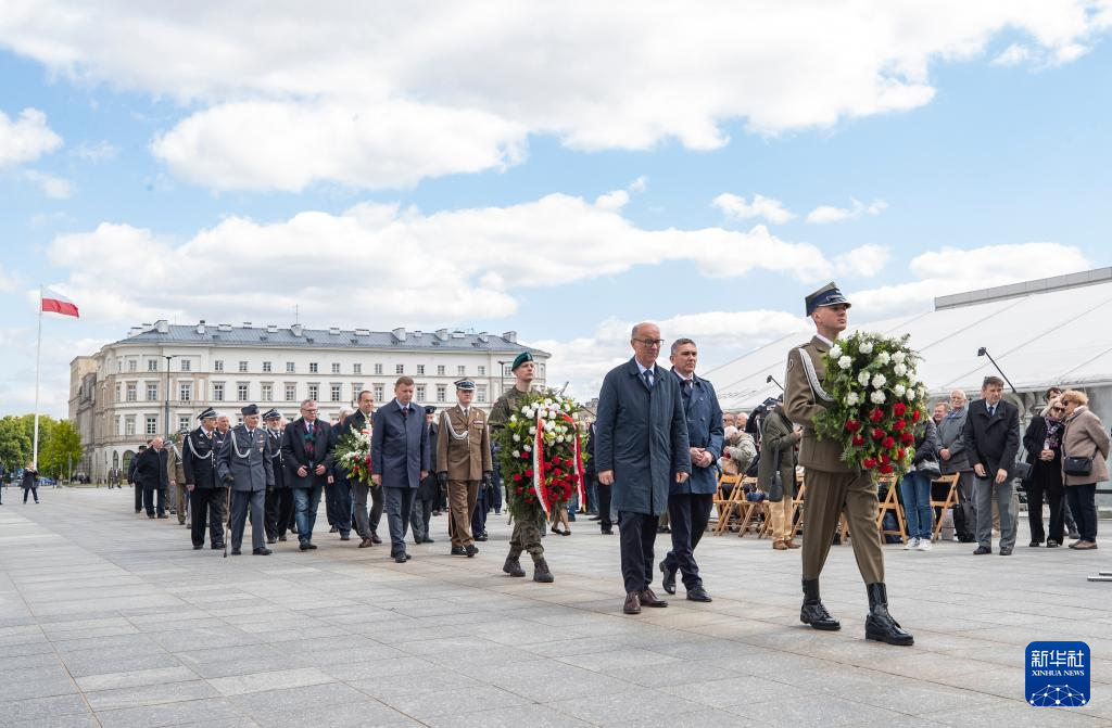 波兰华沙:纪念二战欧洲战场胜利80周年 5月8日,人们在波兰首都华沙的无名烈士墓参加纪念活动。 当日是第二次世界大战“欧洲胜利日”。波兰首都华沙举行活动,纪念第二次世界大战欧洲战场胜利80周年。 新华社记者 张帆 摄