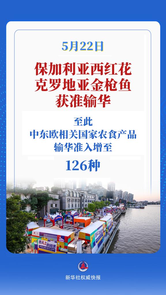 新华社宁波5月22日电(记者邹多为、朱涵)分别签字、交换文本、握手祝贺……22日,随着保加利亚西红花、克罗地亚金枪鱼输华议定书的签订,中东欧14国已有126种农食产品获得对华准入,累计注册3430家境外农产品企业。