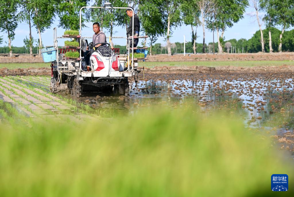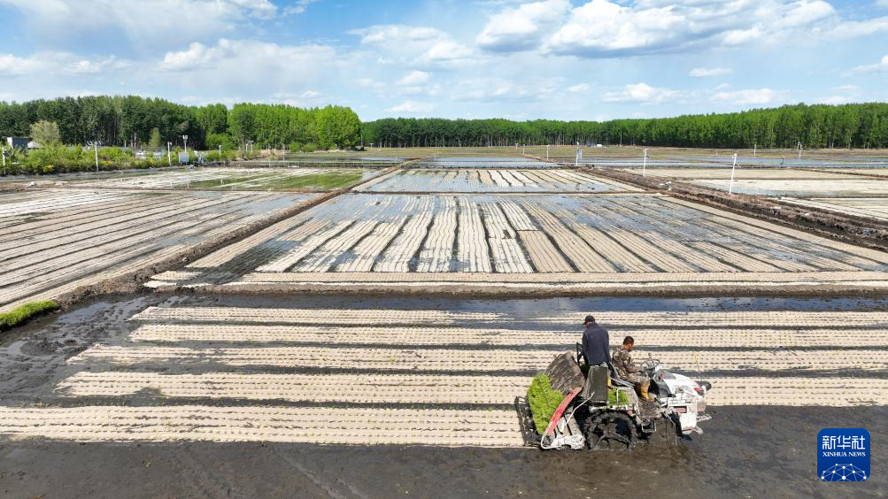 内蒙古兴安盟扎赉特旗正值水稻插秧季,当地农民应用卫星导航、纸膜插秧等现代农业技术,紧抓农时,田间一派繁忙景象。