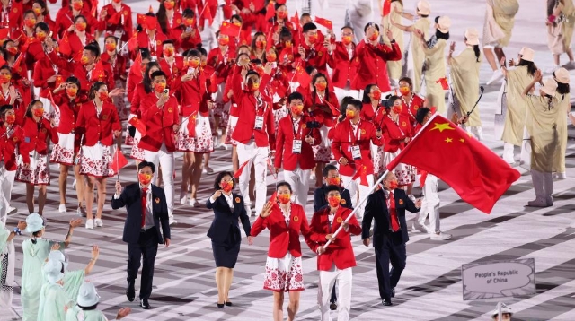 这是中国体育代表团入场。