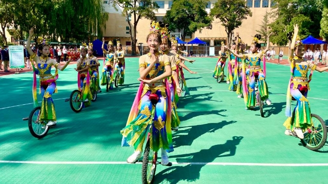 学生们在独轮车上表演敦煌舞。新华社记者 郭刚 摄 “从慢慢掌握独轮车骑行,到能够在独轮车上舞龙舞狮,我感觉自己挑战了高难度。我也不像以前那么内向了,敢于和别人交流,也愿意和大家分享我的经验。”伏龙坪小学六年级学生赵其辉说,他已经掌握了走轮、单脚定车、拉手骑行等独轮车运动技巧。 “丰富多彩的体育运动更能培养出自信、快乐和内心富足的孩子。”王祥说,学校用体育和趣味相结合的方式,帮助孩子们增强自信心,勇于面对困难。同时,体育运动不仅锻炼了孩子们的身体,也开阔了他们的眼界,为他们的成长奠定了良好的基础。 |