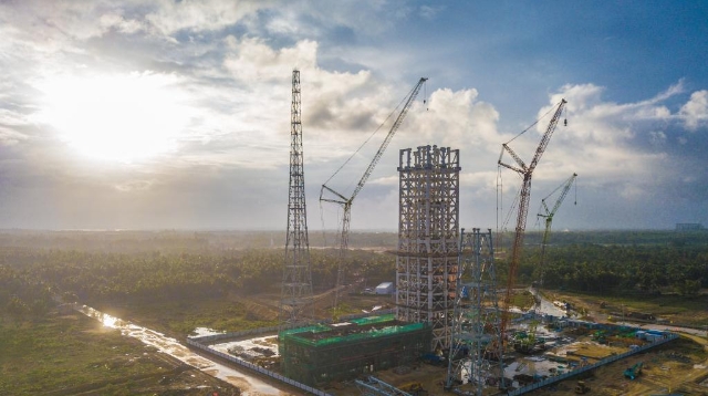 5月12日在海南省文昌市拍摄的建设中的海南商业航天发射场1号工位(无人机照片)。