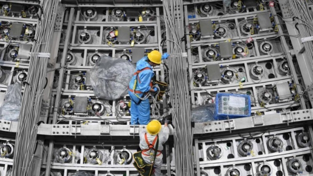 地下探测器目前已完成不锈钢网架安装,预计2024年建成运行,届时将成为国际中微子研究的中心之一。