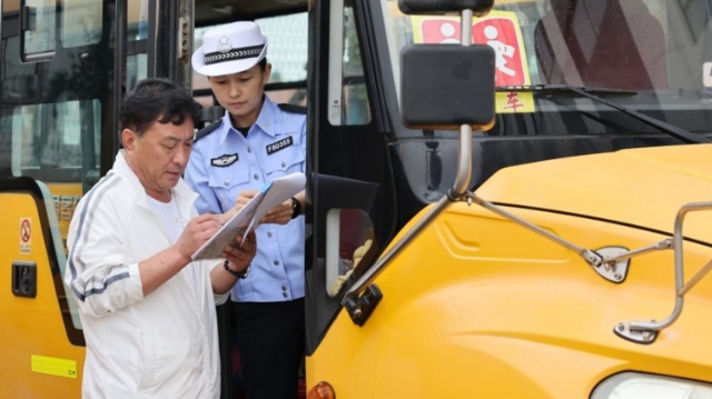 近日,河北省石家庄市藁城区交警部门联合藁城区教育部门对辖区内的校车进行专项安全检查,及时排除安全隐患,确保学生乘车安全,迎接新学期的到来。