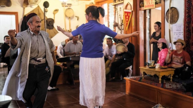 在新疆喀什百年老茶馆品千年茶味