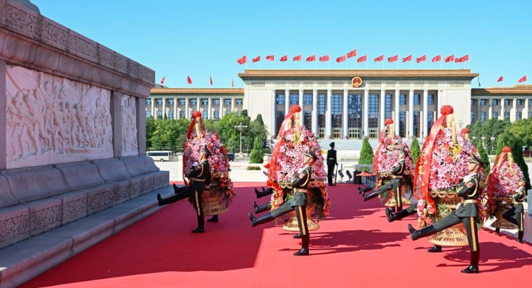 9月30日,烈士纪念日向人民英雄敬献花篮仪式在北京天安门广场隆重举行。