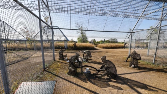 11月7日拍摄的良渚古城遗址公园内钟家港古河道旁的居址作坊展示区。