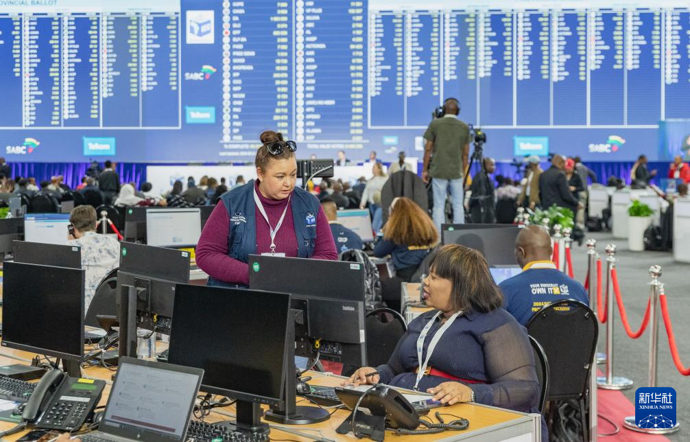 南非大选计票工作紧张进行 5月31日,南非独立选举委员会工作人员在米德兰的大选计票中心内工作。 当日,南非大选计票工作紧张进行。 新华社记者 张誉东 摄