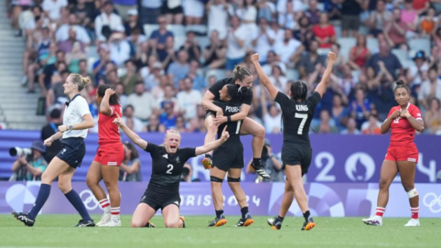 当日,在巴黎奥运会七人制橄榄球女子决赛中,新西兰队19比12战胜加拿大队,夺得冠军。