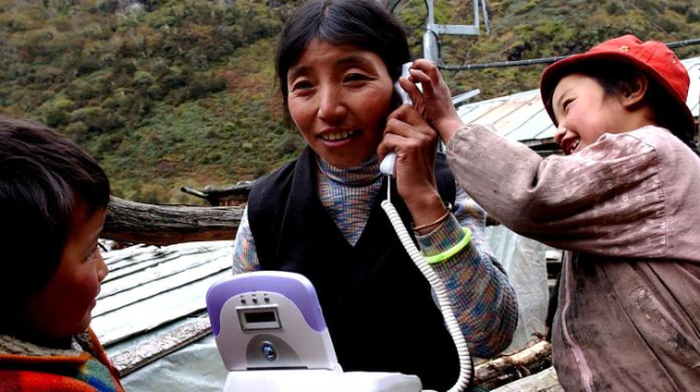拼版照片:上图为2003年10月26日拍摄的卓嘎(中)与孩子们一起从家乡给在山外的朋友打电话(新华社记者索朗罗布摄);下图为2024年10月15日拍摄的卓嘎抱着外孙通过微信语音与女儿通话(新华社记者丁汀摄)。