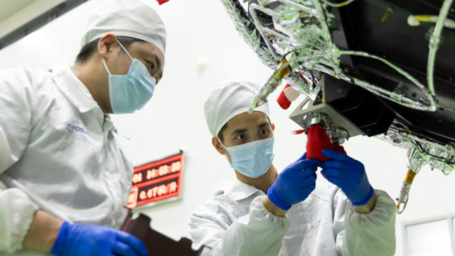 11月4日,在位于上海的中国科学院微小卫星创新研究院总装厂房,科研人员对“微笑”卫星进行最后的检查。 新华社记者 金立旺 摄