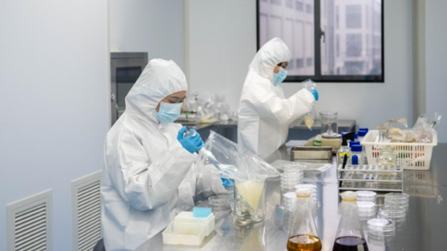 11月24日,在湖南宁乡经开区一家预制菜企业食品检测中心,工作人员在检测食品成分。