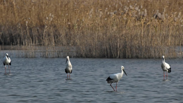 11月26日,东方白鹳在河北省唐山市曹妃甸湿地觅食。 近日,大批东方白鹳飞抵河北省唐山市曹妃甸湿地休憩觅食。东方白鹳是国家一级保护动物,有“鸟类大熊猫”之称。近年来,唐山市持续加大曹妃甸湿地生态保护和修复,鸟类栖息环境得到明显改善,吸引大量迁徙的东方白鹳等鸟类在此停歇觅食。 新华社记者 杨世尧 摄