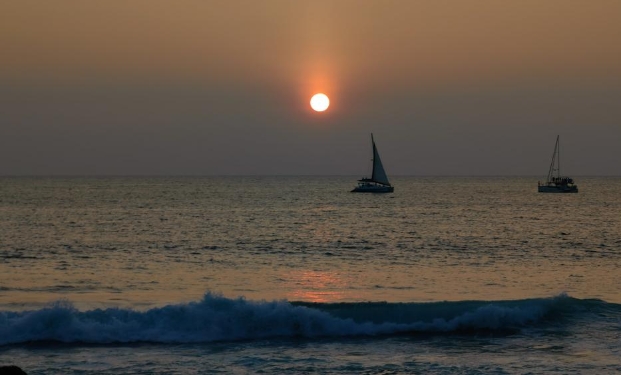 这是12月26日在斯里兰卡科伦坡加勒菲斯绿地拍摄的印度洋海上落日风光(手机照片)。