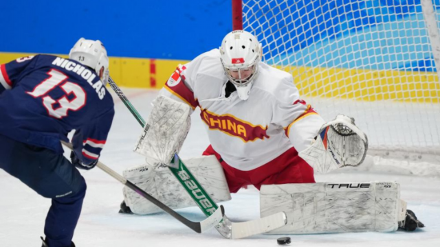 当日,在哈尔滨冰球馆举行的2025年第九届亚冬会男子冰球小组赛A组比赛中,中国队8比0战胜泰国队。