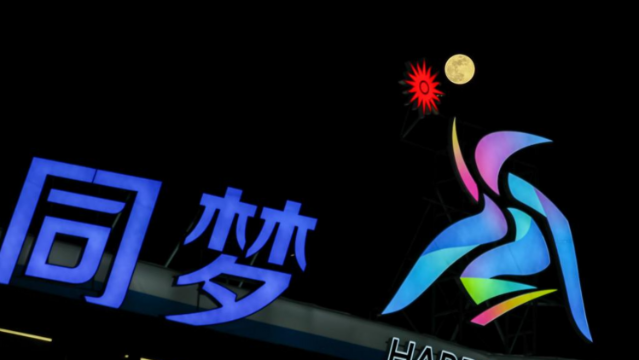 当日是元宵佳节,圆月高悬,银辉洒满大地,亚冬之城哈尔滨在此刻熠熠生辉。