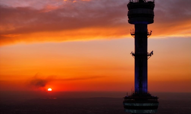 这是5月13日在哈萨克斯坦阿拉木图拍摄的科克托别山和科克托别电视塔(无人机照片)。