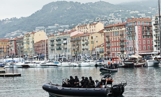 6月9日,在法国尼斯,警察在第三届联合国海洋大会会场外警戒。