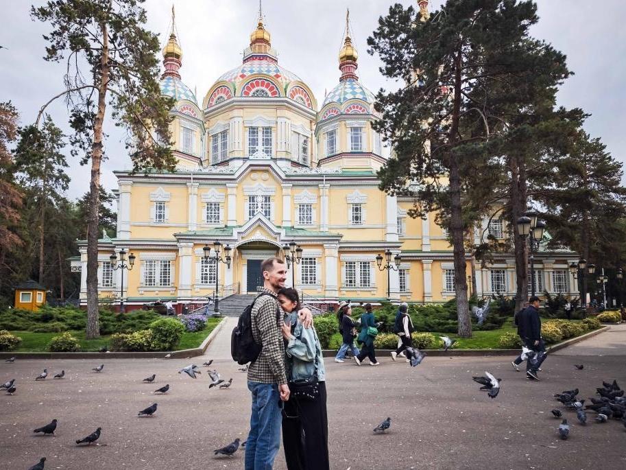 阿拉木图秋日 9月30日,一对情侣在哈萨克斯坦阿拉木图的28勇士公园相拥(手机照片)。 进入秋季,哈萨克斯坦第一大城市阿拉木图秋高气爽,许多市民来到户外享受秋日。 新华社记者 李任滋 摄