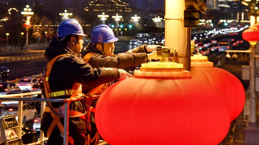 北京:大红灯笼装点长安街