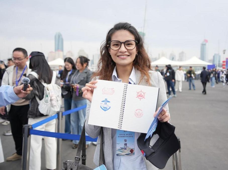 台湾同胞参加海军成立77周年纪念日舰艇开放活动